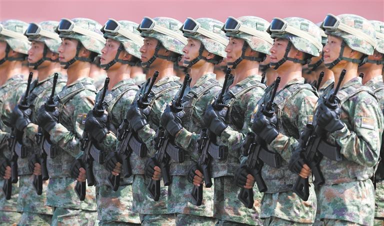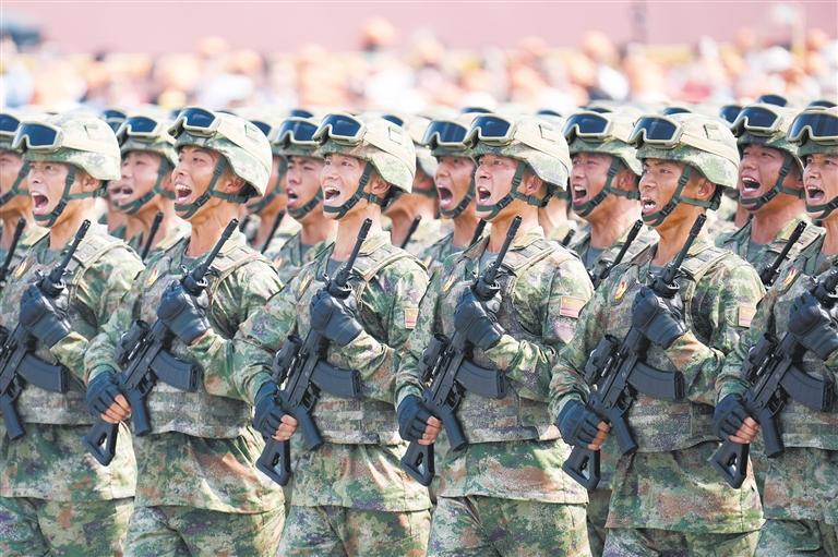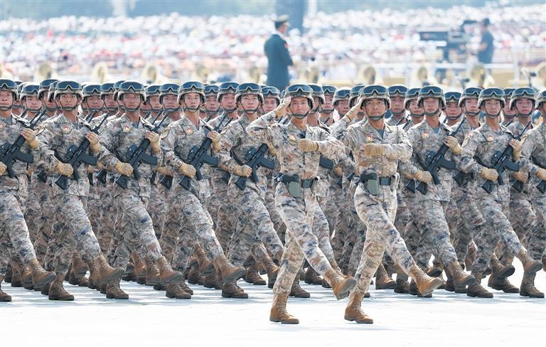 首次接受祖国和人民检阅 这是网络空间部队方队接受检阅。 新华社记者 徐昱摄