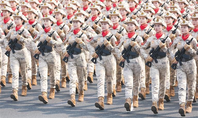 首次亮相阅兵场 这是信息支援部队方队接受检阅。 新华社记者 万象摄