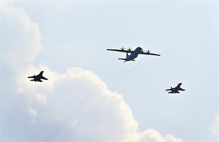 海军空军新型特种支援力量首次集体亮相 这是特种机梯队接受检阅。 新华社记者 李鑫摄