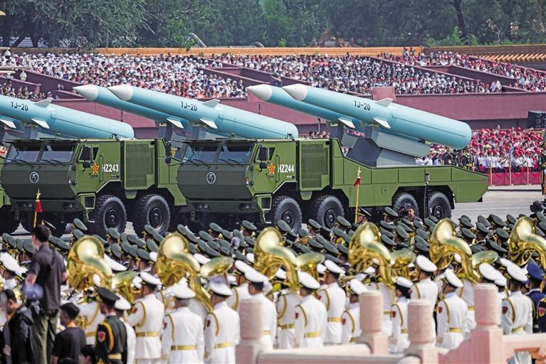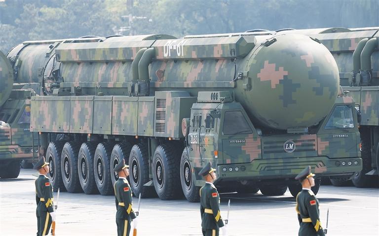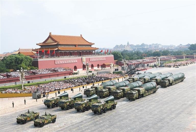 这是核导弹第一方队接受检阅。 新华社记者 潘昱龙摄
