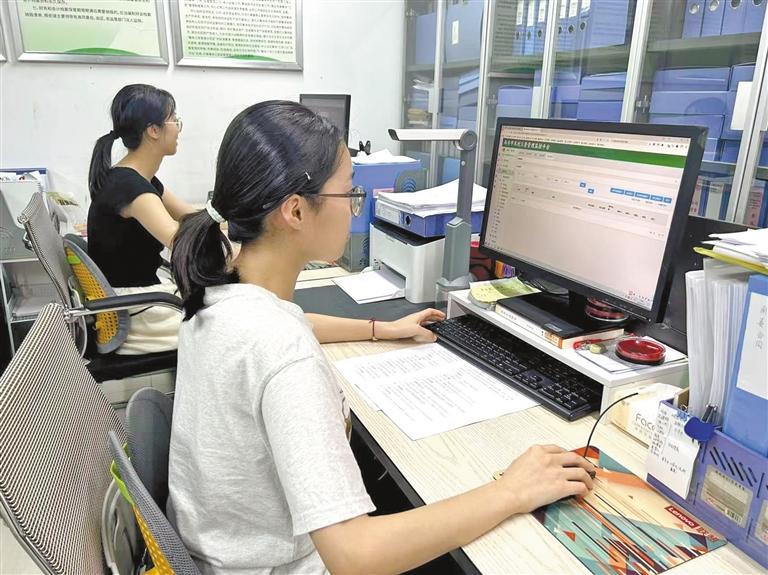 7月31日,在西安市雁塔区长延堡街道集体资产监管运营服务中心,工作人员查看西安市农村集体“三资三化”管理平台(资料照片)。