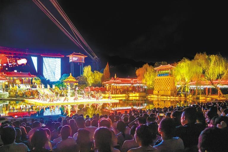 8月20日,华清宫景区九龙湖畔,游客在观看舞剧《长恨歌》(资料照片)。