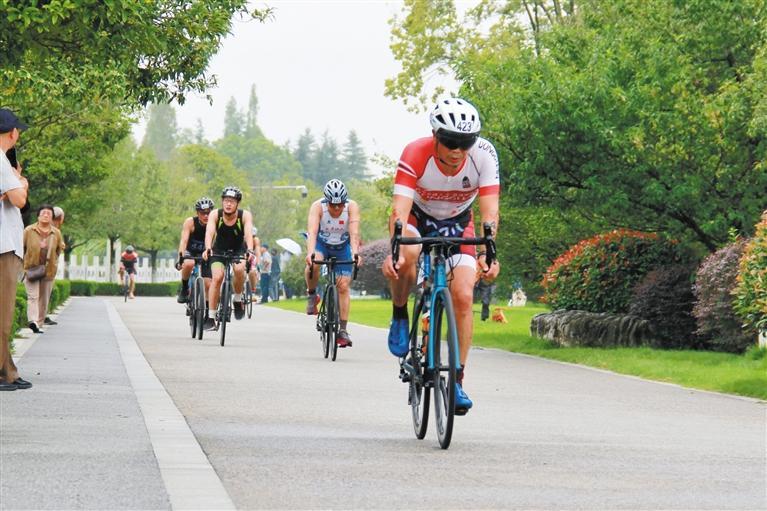 9月7日,由中国铁人三项运动协会指导、陕西省体育局主办的2025生态汉中铁人三项赛举行。来自15个省(区、市)的300余名运动员与俄罗斯、英国、黎巴嫩、南非等国家选手齐聚汉中,同场竞技。经过激烈角逐,16名选手分别斩获不同组别冠军。图为选手在进行自行车骑行项目比赛。 本报通讯员 何祥弘摄