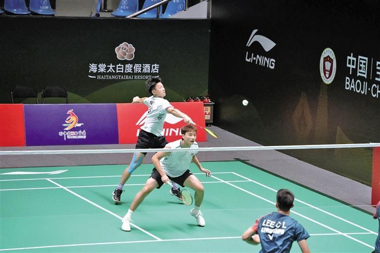 9月7日,2025年中国(宝鸡)国际羽毛球大师赛在宝鸡市体育馆落下帷幕,中国羽毛球队以三金五银的优异成绩收官。图为运动员在比赛中。 本报通讯员 崔梦麟摄