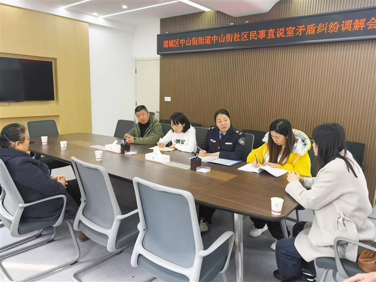 今年四月,中山街社区工作人员在民事直说室为居民调解纠纷(资料照片)。 受访单位供图