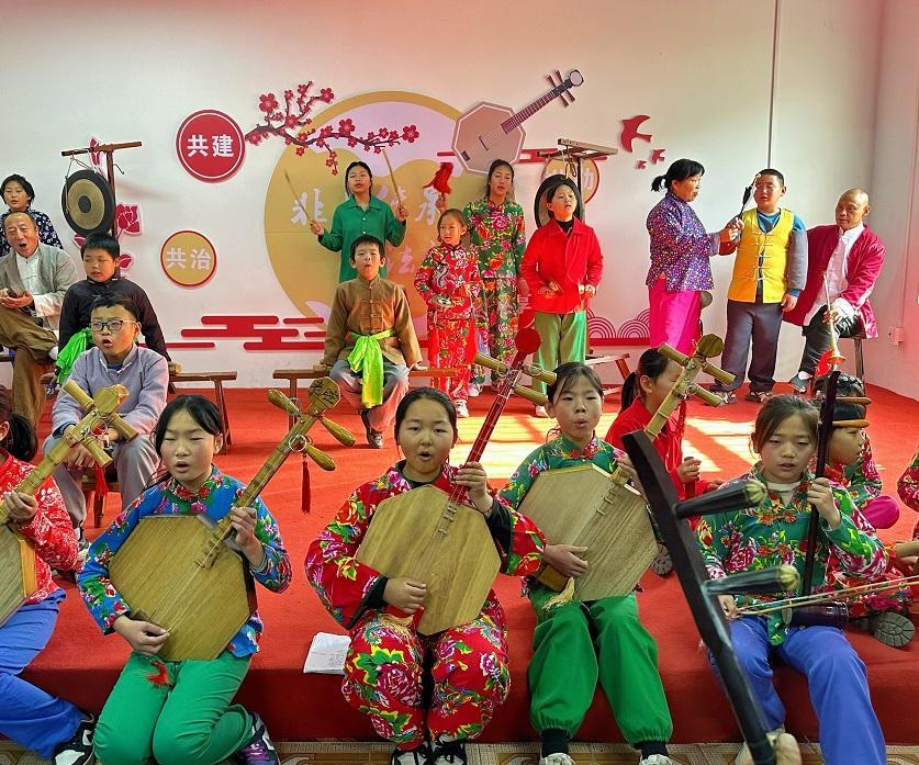 华阴市岳庙街道卫峪小学学生在学习华阴老腔(资料照片)。 本报记者 陈宏江摄