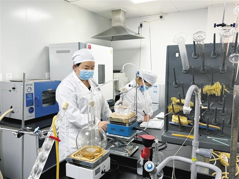 8月28日,嘉陵江畔,秋雨绵绵。在位于略阳县横现河街道工业园区的陕西亿超能生物科技有限公司,工作人员在检测室里对新生产的黄精啤酒进行产品检测。