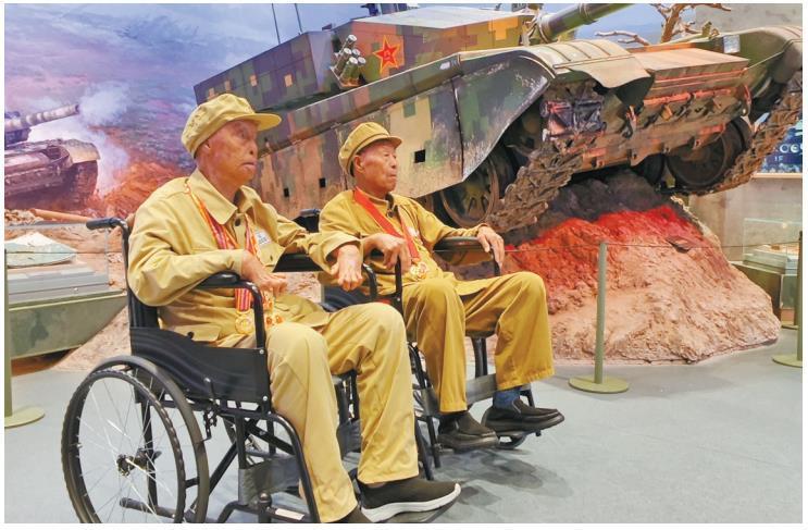 8月8日,抗美援朝老兵赵连北(左)和杨培善(右)参观中国人民革命军事博物馆(资料照片)。 受访者供图