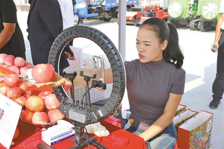 共享办公室、直播带货间、产品展示台……走进尧生镇电子商务公共服务中心,映入眼帘的是两排高标准直播间。每年8月至来年4月,这里熙熙攘攘,“新农人”在这里线上卖苹果已成为重要的销售方式。