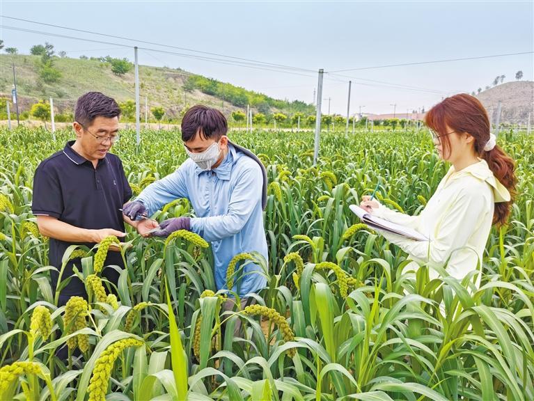 九月三日,科研人员在榆林的地面选育基地,记录观察“米谷”系列品种的生长情况。 受访者供图