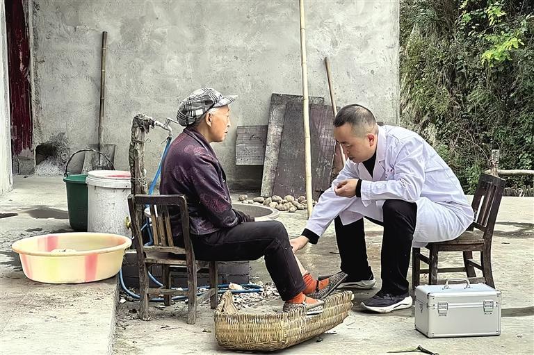 岚皋县孟石岭镇卫生院院长杨志锌在给患者诊疗。 受访者供图