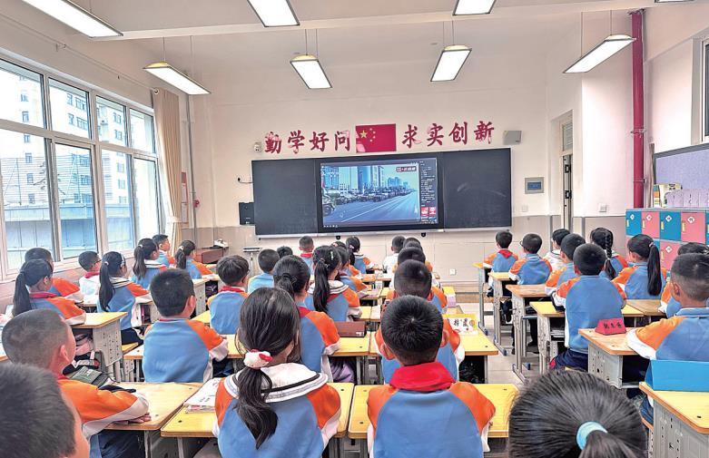 9月3日上午,陇县秦源小学组织学生观看九三阅兵直播,感悟伟大抗战精神(资料照片)。 受访者供图
