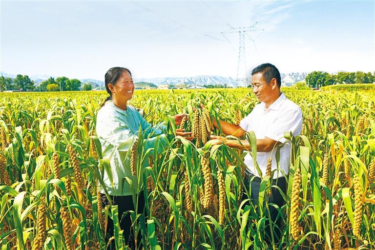 在专家建议下,我把每亩谷子株数降到2.8万株左右,还引进了新品种,当年,谷子地的亩产突破了350公斤。