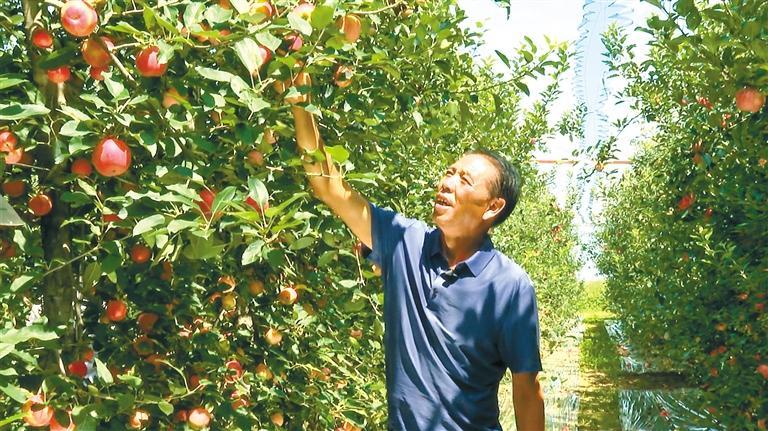 科技给我家苹果“镶了金”。去年,我家50亩果园总收入超200万元,比5年前翻了两番。