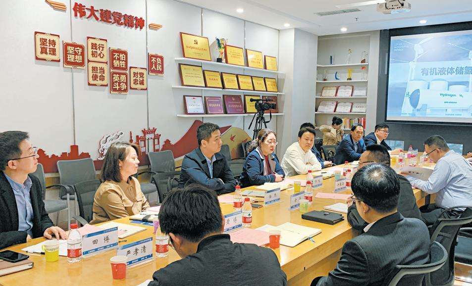 田博(左一)组织彬州市相关部门负责人到西安交通大学化工学院对接氢易能源项目落地事宜(资料照片)。 受访者供图