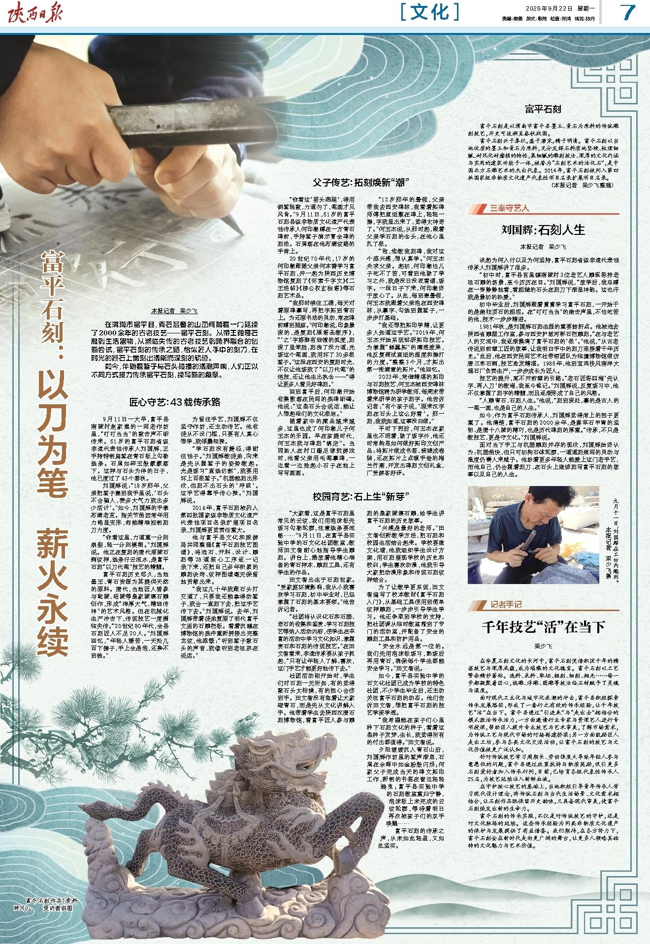 富平石刻是以渭南市富平县墨玉、青石为原料的传统雕刻技艺,历史可追溯至春秋战国。