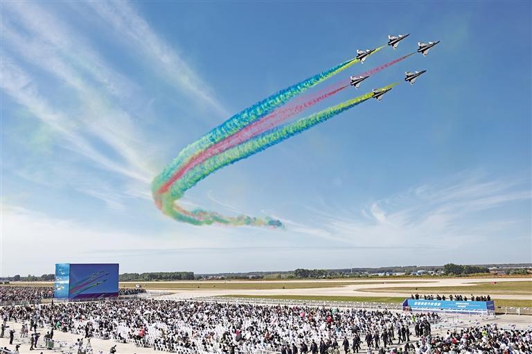 9月23日,在第十一届空军航空开放活动和长春航空展上,空军八一飞行表演队进行飞行表演。