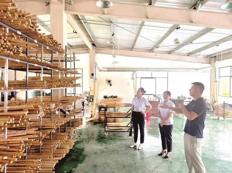 中国农业银行陕西省分行围绕支持服务实体经济发展的总要求,通过优化报价机制、倾斜资本配置等方式,支持小微外贸企业发展。图为走访某竹制品出口企业。