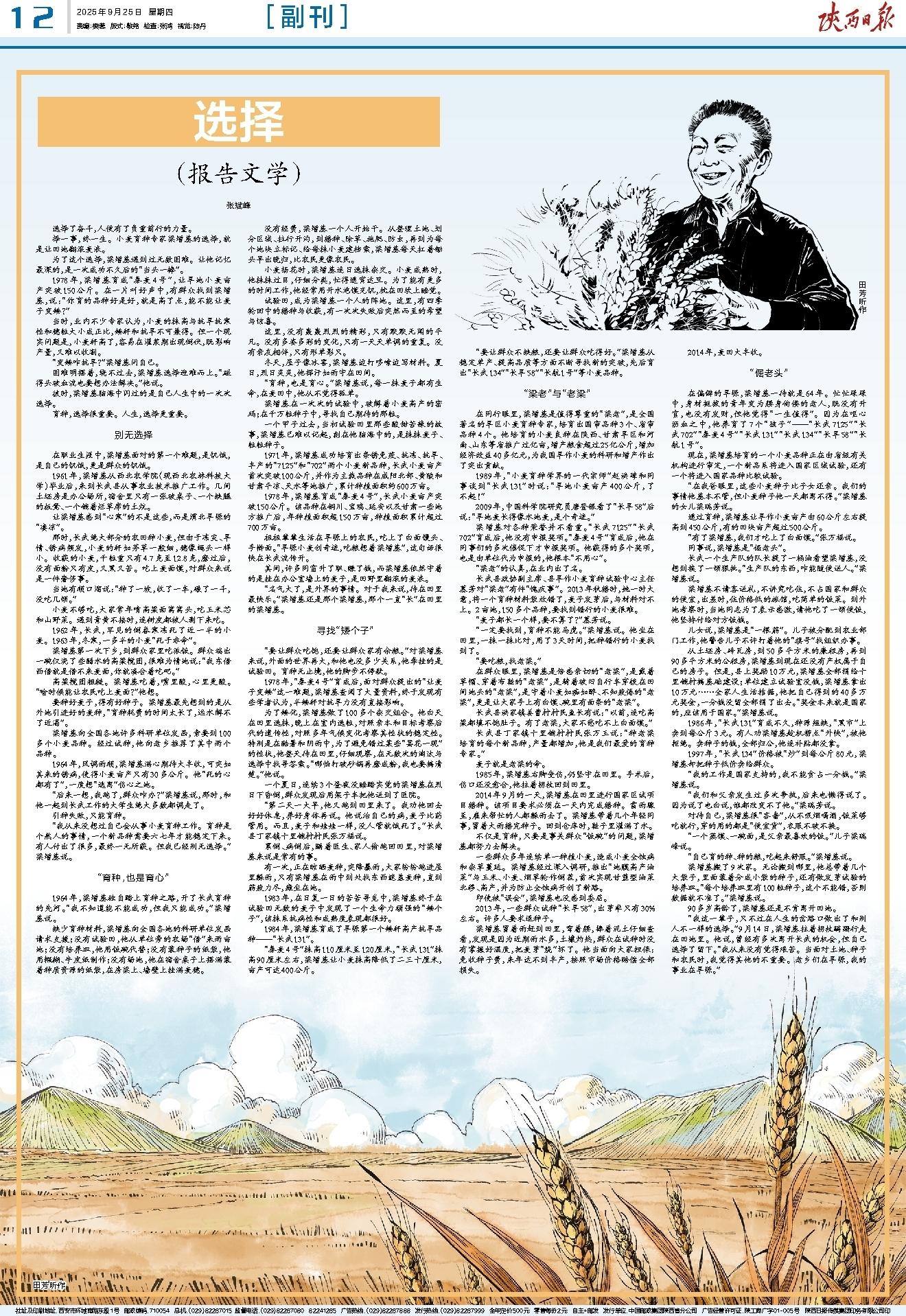 择一事,终一生。小麦育种专家梁增基的选择,就是让田地翻滚麦浪。