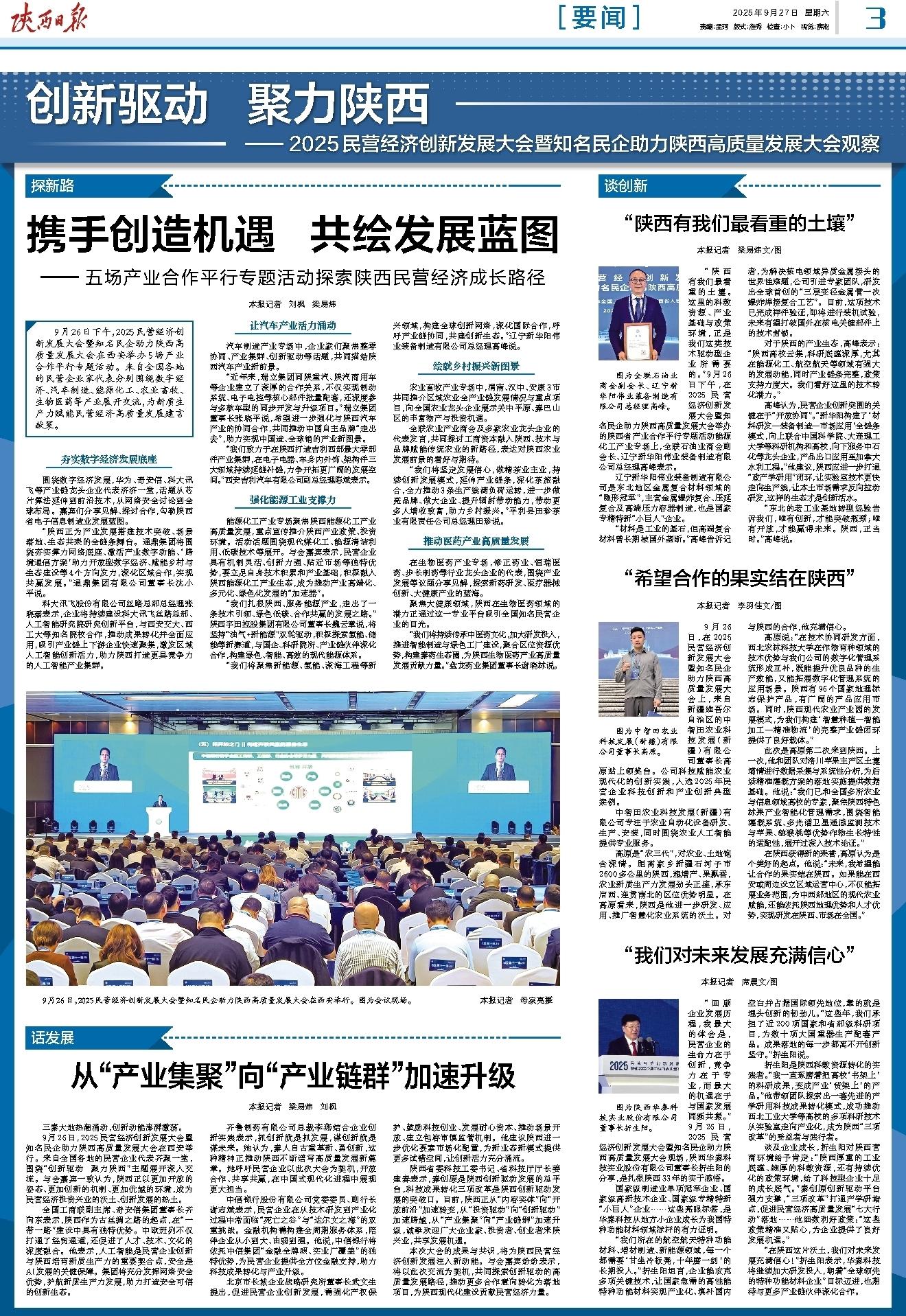 “回顾企业发展历程,我最大的体会是,民营企业的生命力在于创新,竞争力在于专业,而最大的机遇在于与国家发展同频共振。”9月26日,2025民营经济创新发展大会暨知名民企助力陕西高质量发展大会现场,陕西华秦科技实业股份有限公司董事长折生阳的分享,是扎根陕西33年的实干感悟。