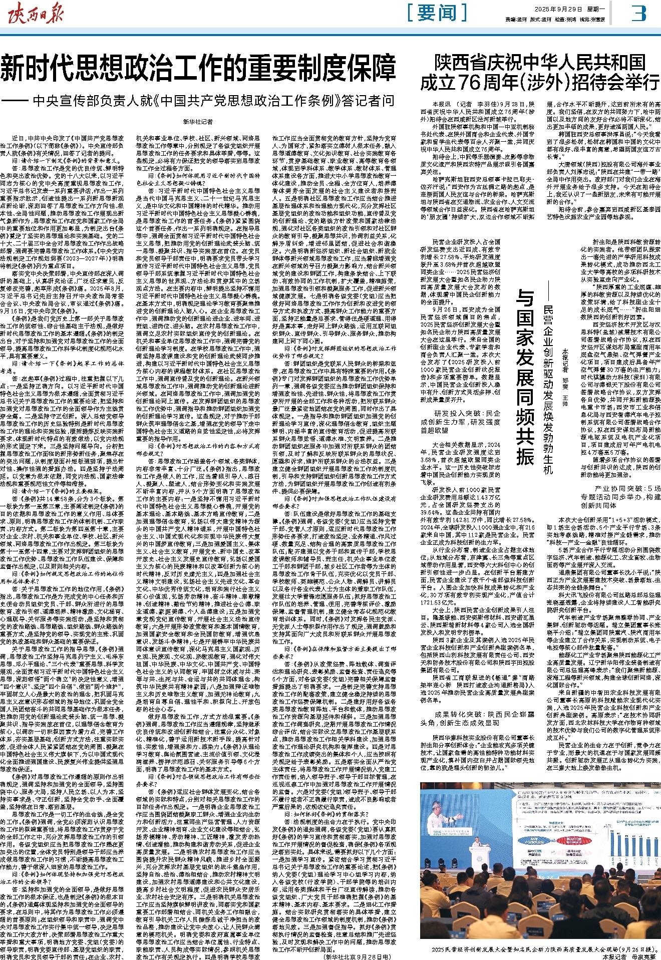 本报讯 (记者 李羽佳)9月28日,陕西省庆祝中华人民共和国成立76周年(涉外)招待会在西咸新区泾河新城举行。