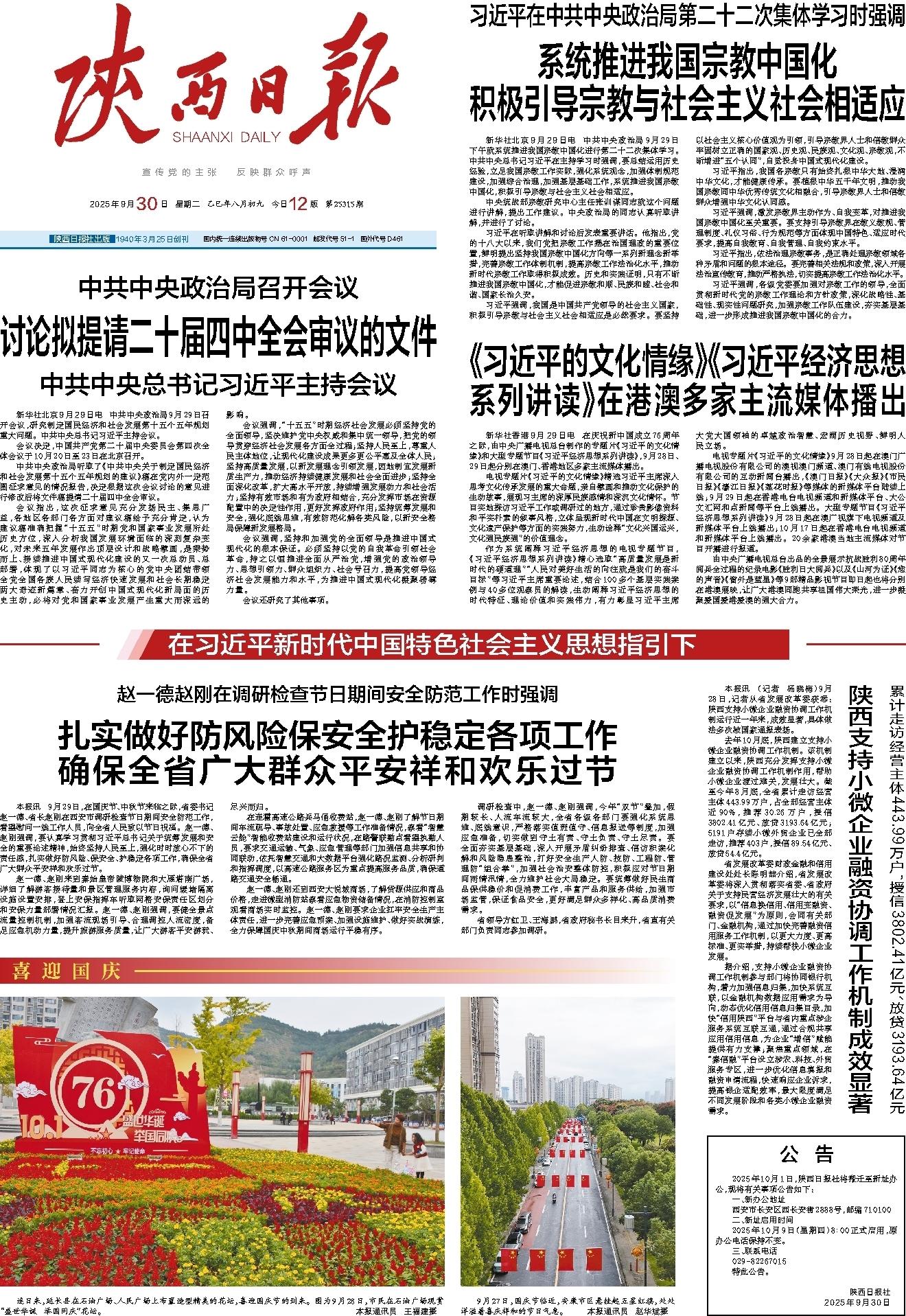 2025年10月1日,陕西日报社将搬迁至新址办公,现将有关事项公告如下: