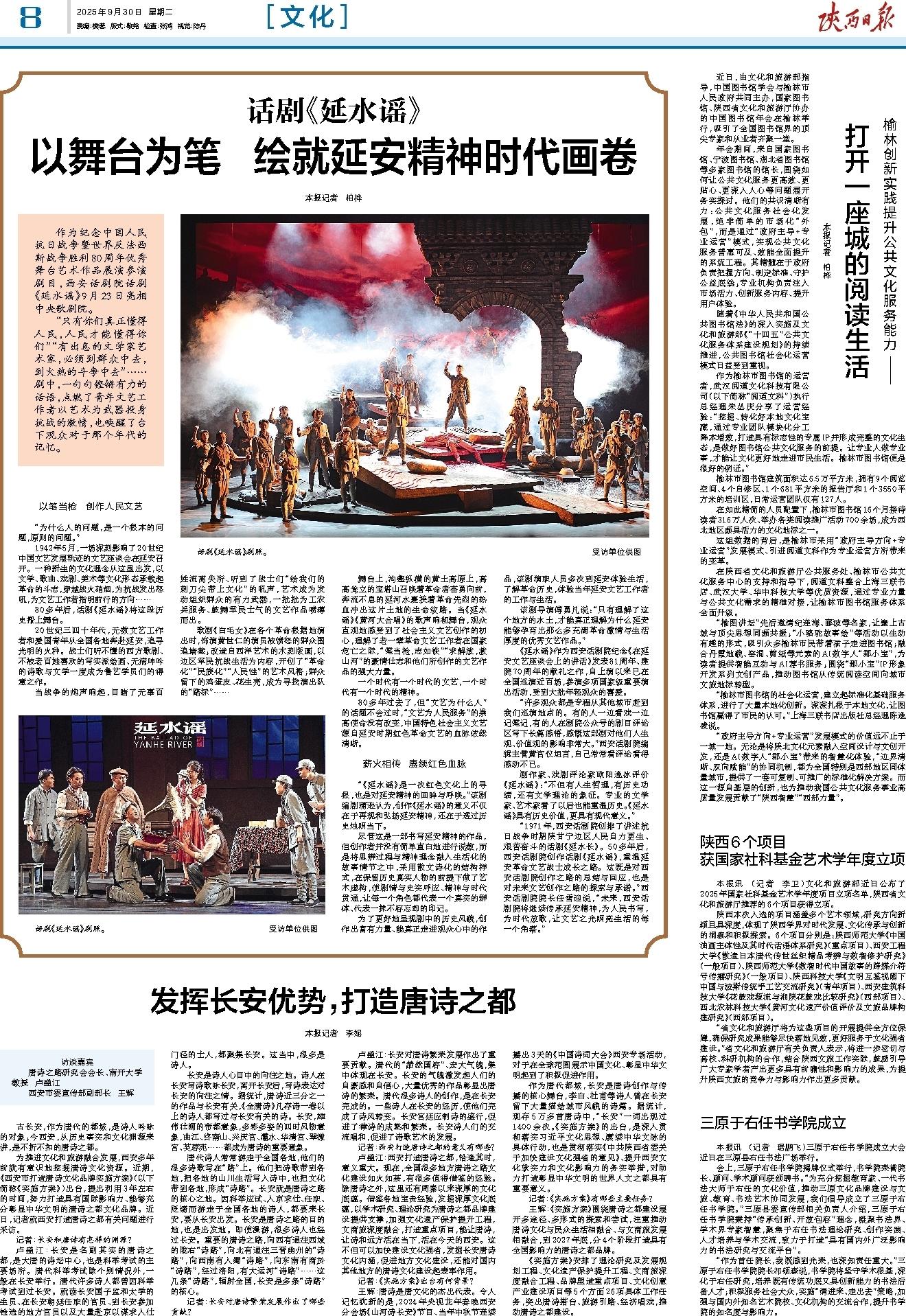 “省文化和旅游厅将为这些项目的开展提供全方位保障,确保研究成果能够尽快落地见效,更好服务于文化强省建设。”省文化和旅游厅有关负责人表示,将进一步密切与高校、科研机构的合作,结合陕西文旅工作实际,鼓励引导广大专家学者产出更多具有前瞻性和影响力的成果,为提升陕西文旅的竞争力与影响力作出更多贡献。