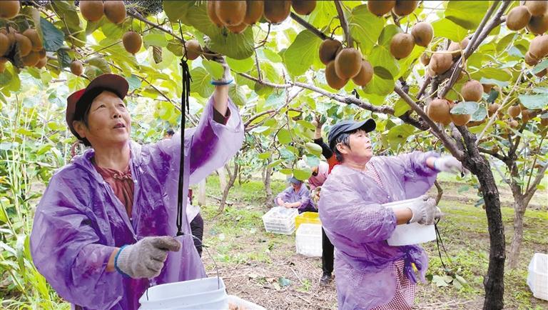 9月19日,五泉镇王上村村民在采摘猕猴桃。 本报通讯员 行波摄