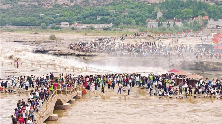 10月2日,延安市宜川县黄河壶口瀑布景区游人如织。 本报通讯员 王磊摄