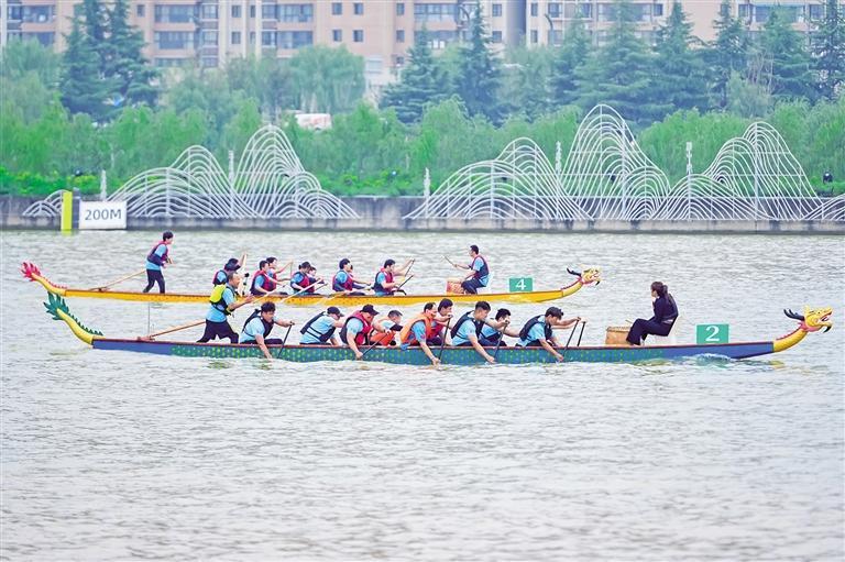 10月3日,“山南水北 咸阳很美”2025咸阳湖龙舟赛在咸阳湖二号桥附近水域举行。 本报记者 张江舟摄