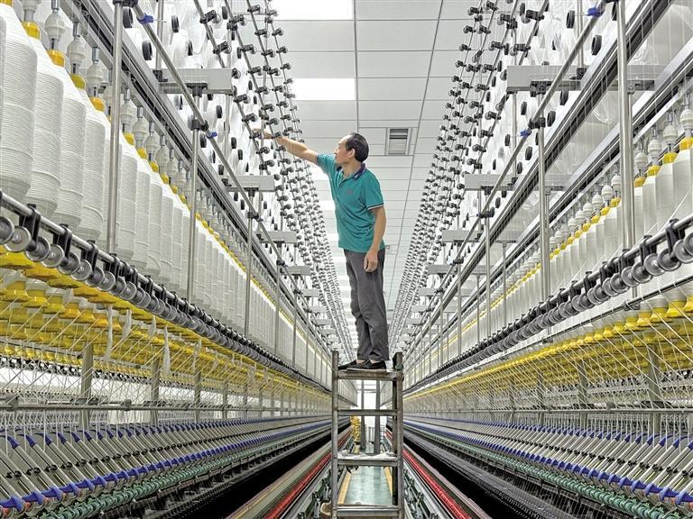10月4日,汉阴经开区安康智港华纺织有限公司的生产车间内,工人在忙碌有序作业。 本报通讯员 王建霞摄