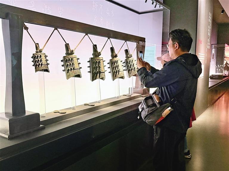 10月7日,游客在宝鸡青铜器博物院参观。