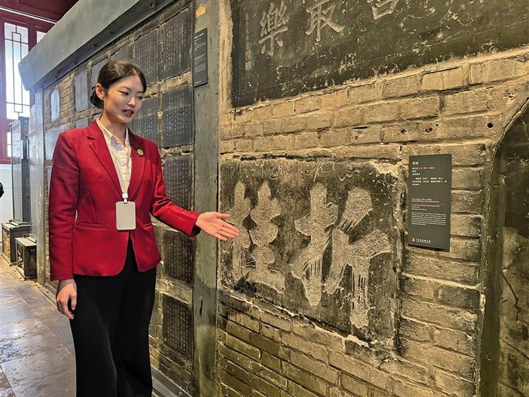 10月3日,在西安碑林博物馆,讲解员韩雪介绍碑刻《折桂》。