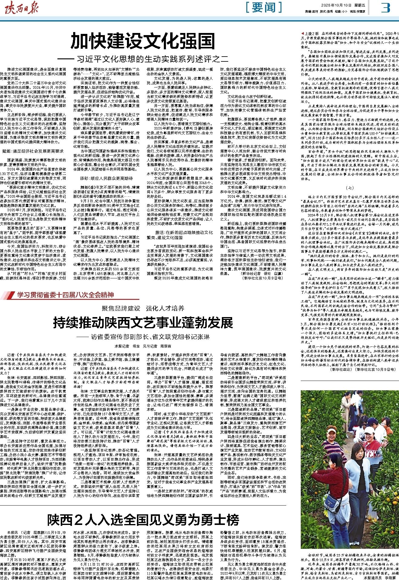 本报讯 (记者 屈荔鹏)10月9日,中央政法委发布2025年第二、三季度见义勇为勇士榜,共69人入选。其中,西安市高陵区泾渭街道天正银河湾小区居民李静毅、西安高新区特种飞行器产业园保安寇海波上榜。