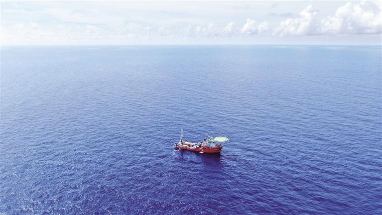 “海洋地质二号”科考船搭载“海马”号深海遥控潜水器在南海北部进行“源火”采集(9月18日摄)。 本组照片均由新华社记者 卢汉欣摄