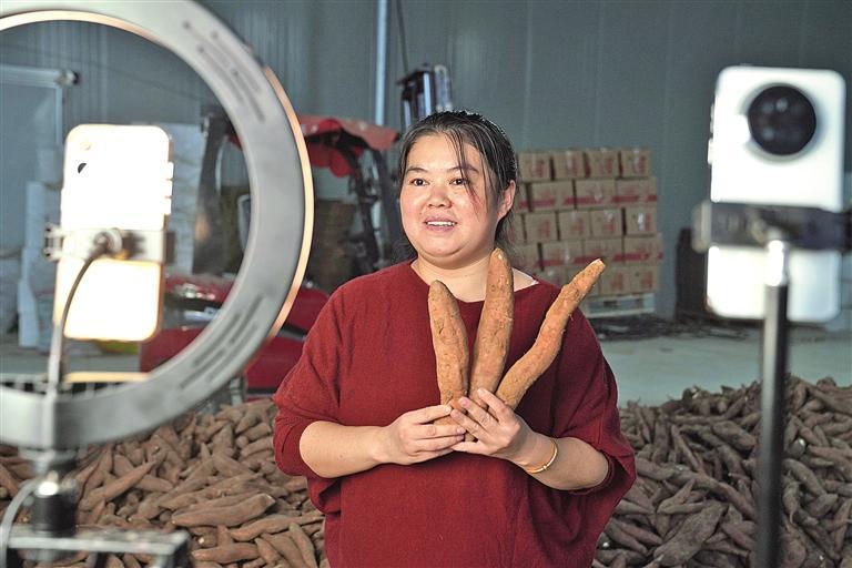 “家人们,这是我们临潼的板栗红薯,软糯香甜、干瓤无丝,蒸煮烤都特别香……”9月28日,在西安市临潼区任留街道南屯村,西安正好电子商务有限公司总经理詹莹珠拿着刚从地里挖出来的红薯,对着手机屏幕热情地推介着。