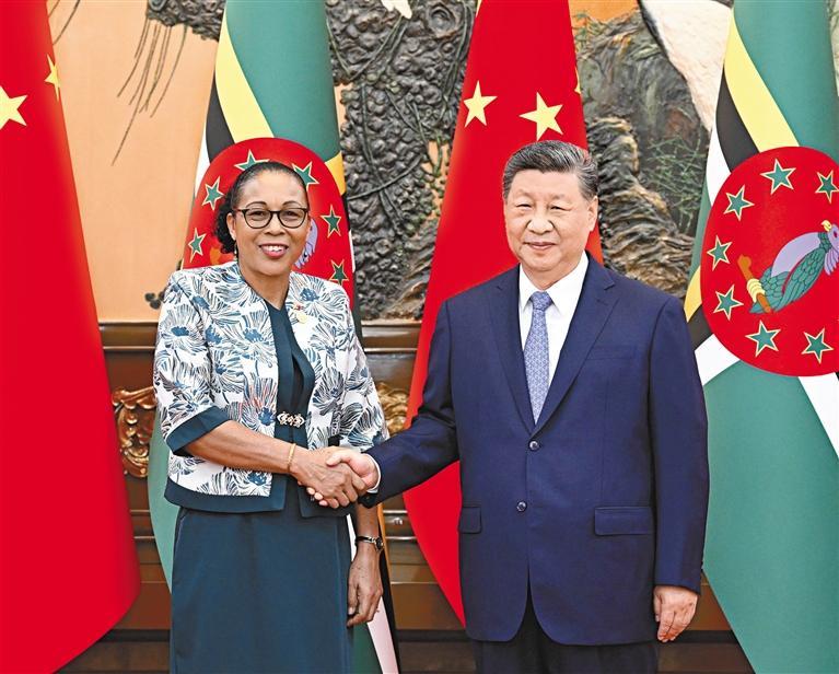 习近平指出,多米尼克是中国在加勒比地区的好朋友、好伙伴。建交20多年来,两国始终相互尊重、平等相待,政治互信不断巩固,各领域交流合作蓬勃开展,人民友谊日益深厚,树立了不同社会制度、不同大小国家间友好合作的典范。中方愿同多方一道,推动两国关系迈向更高水平,更好造福两国人民。