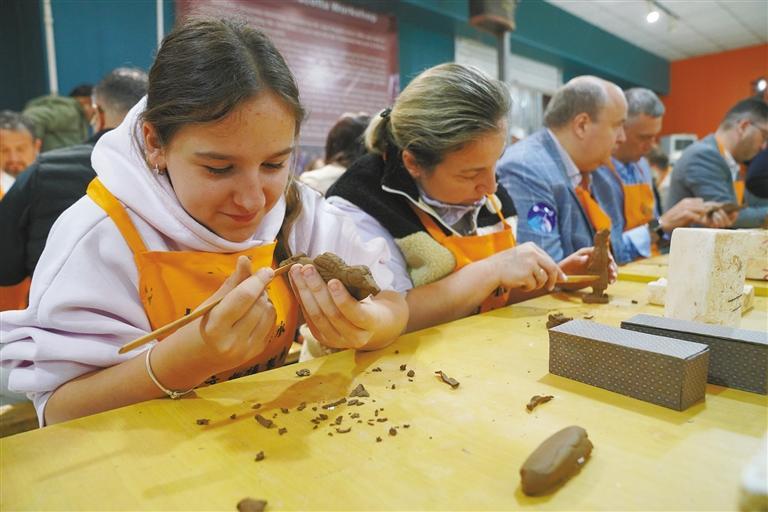 “是的,我们参观兵马俑的时候,导游就说很多兵马俑身上都有工匠的名字,甚至有工匠留下的指纹。”Nadzeya认真地将自己的名字刻在了陶俑底部。“每个陶俑神态各异、细节精致,展现了秦朝高超的制陶工艺,真是太神奇了。我要把我制作的这尊‘兵马俑’带回家送给弟弟。”Nadzeya说。