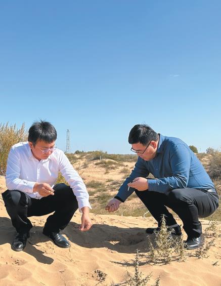 2023年,在甘肃酒泉的光伏治沙实验现场,卢威团队面对的是“上层沙漠、下层盐碱地”的复杂地质条件。“不同区域的地质、降雨情况不同,不能用一套方案‘打天下’。”他带领科研人员驻扎现场一个多月,每天监测土壤湿度、植物生长情况,最终摸索出“防水沙+保水剂”的复合治理模式,在沙地上种活了沙棘与苜蓿。