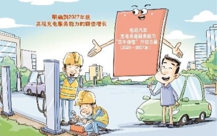 缓解“里程焦虑”出实招。国家发展改革委、国家能源局等部门近日印发《电动汽车充电设施服务能力“三年倍增”行动方案(2025—2027年)》,明确到2027年底,实现充电服务能力的翻倍增长。 新华社发(王鹏作)