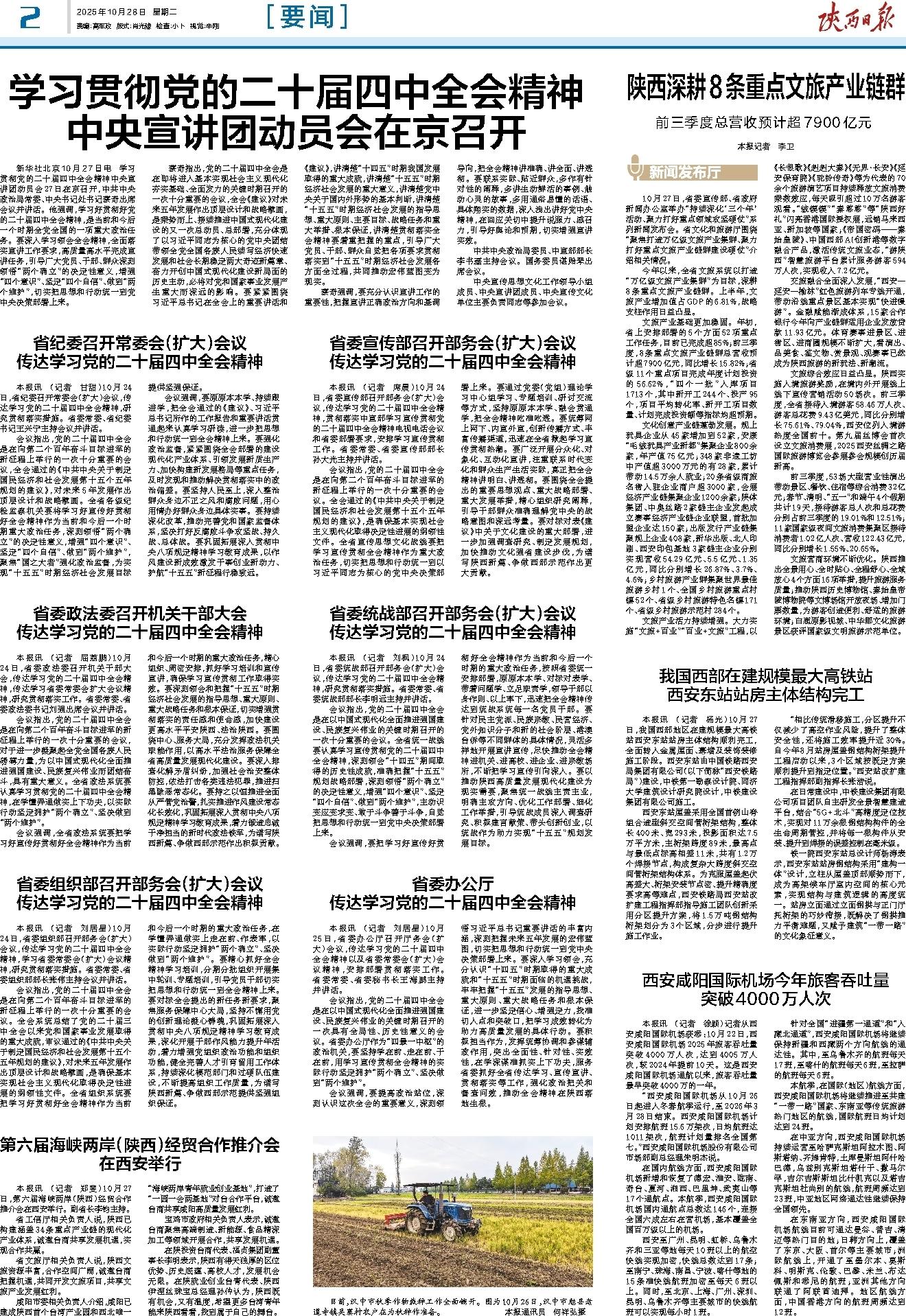 交旅融合全面深入发展,“西安—延安—榆林”红色旅游列车专线开通,带动沿线重点景区基本实现“快进慢游”。金融赋能渐成体系,15家合作银行今年向产业链群适用企业发放贷款11.93亿元。体育赛事进景区、进街区、进商圈规模不断扩大,看演出、品美食、鉴文物、赏景观、观赛事已然成为陕西旅游的新玩法、新潮流。