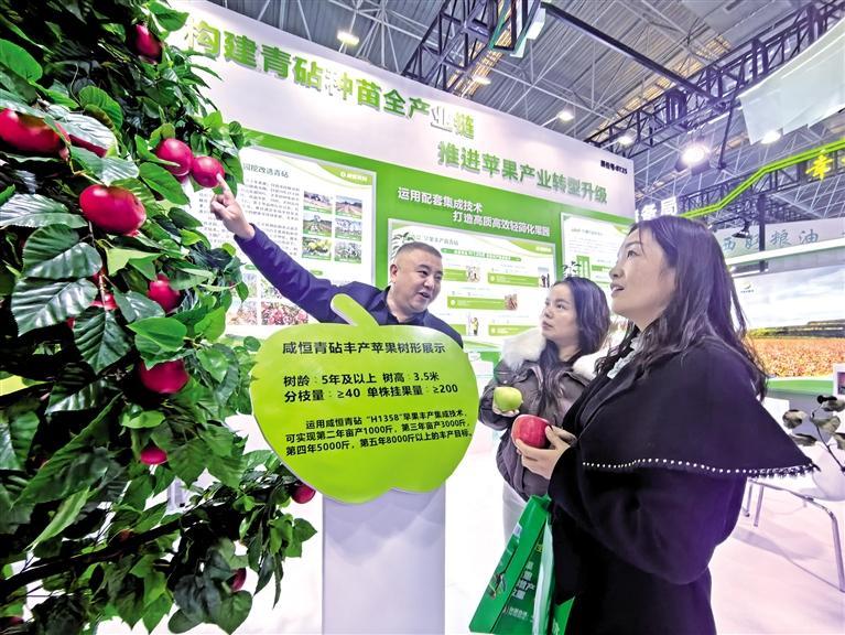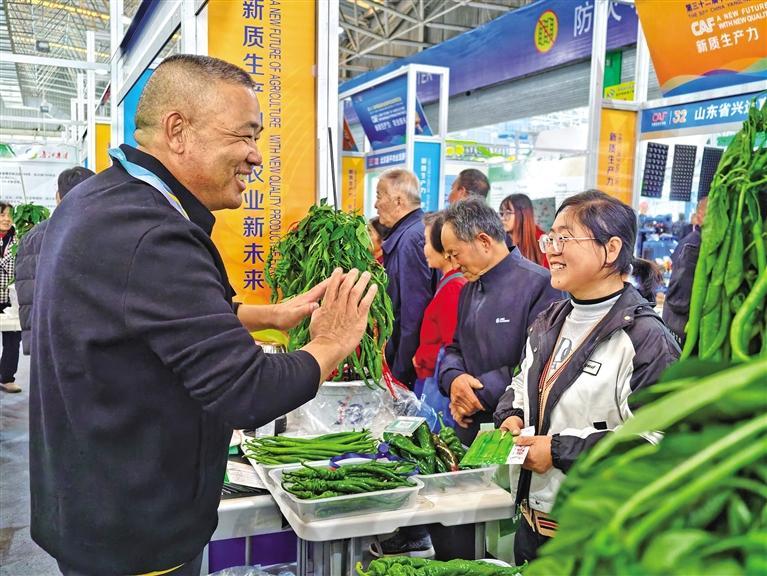 10月27日,在农高会农业实用技术推广展馆,来自安徽的参展商向观展群众推介辣椒种子。 本报记者 田若楠摄