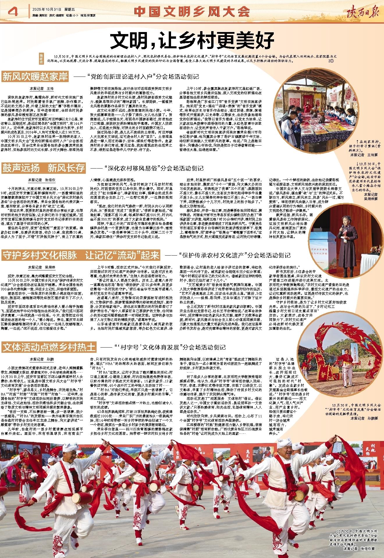 小朋友表演花式篮球和花式足球,老年人挥舞着飘带龙、挥舞着太极剑,锣鼓喧天中,子长唢呐曲调高昂……10月30日上午,延安市宝塔区万花山镇佛道坪村人头攒动、热闹非凡。这里是中国文明乡风大会“‘村字号’文化体育发展”分会场活动现场。
