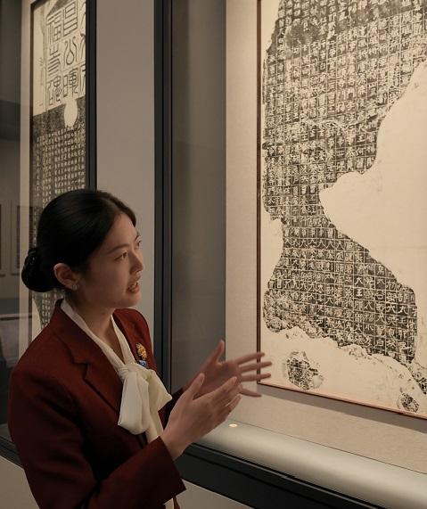 10月29日,西安碑林博物馆讲解员韩雪介绍广武将军碑的相关情况。