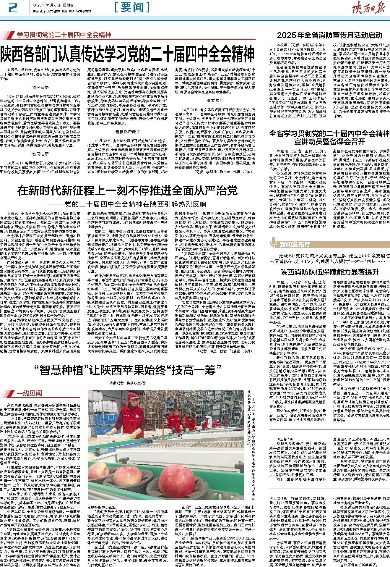 “党的二十届四中全会强调,加快高水平科技自立自强,因地制宜发展新质生产力。这对我们农业领域来说,就是要用新技术、新业态改造提升传统产业。”张田龙说,当地政府不断加大对企业科技创新、品牌建设等方面的支持力度,为企业发展注入了新的动力。近年来,公司在苹果新特品种种苗繁育与推广、科学种植等科技创新领域取得显著成果,累计获得30多项科技成果,直接带动周边5万多亩果园实现科学化发展。公司获批国家级高新技术企业和省级专精特新中小企业。