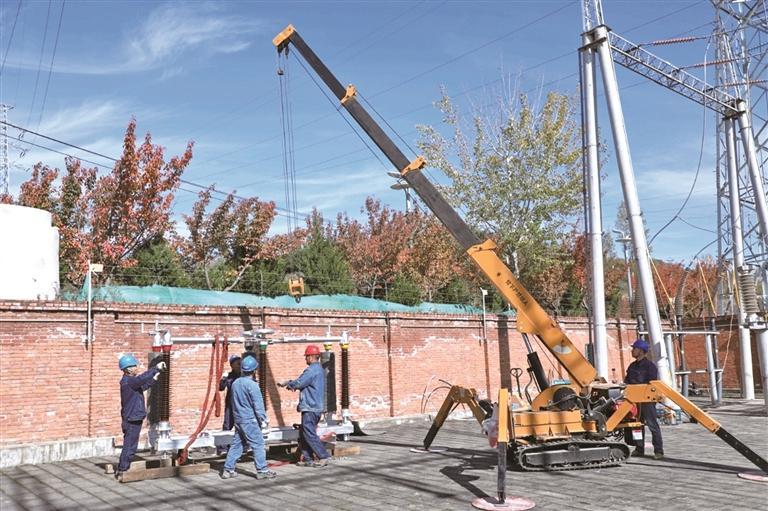 10月29日,国网陕西电力宝鸡供电公司电力人员在110千伏太白变电站开展融冰刀闸安装作业(资料照片)。 本报记者 肖倩摄