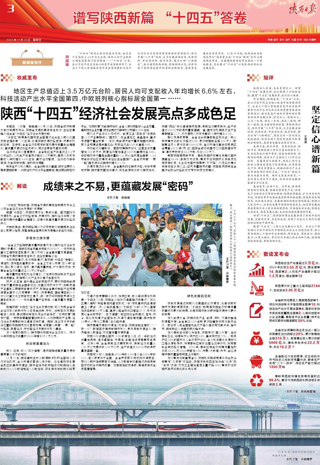 “十四五”时期是我国开启全面建设社会主义现代化国家新征程的第一个五年,也是陕西发展攻坚克难、积厚成势的五年。五年来,全省经济实现质的有效提升和量的合理增长,高质量发展迈出坚实步伐,规划主要目标基本实现。