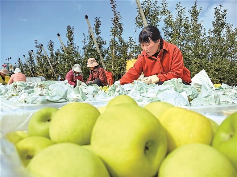 初冬,淳化县的乡村街巷、储藏冷库果香弥漫,黄绿色的瑞雪苹果随处可见。