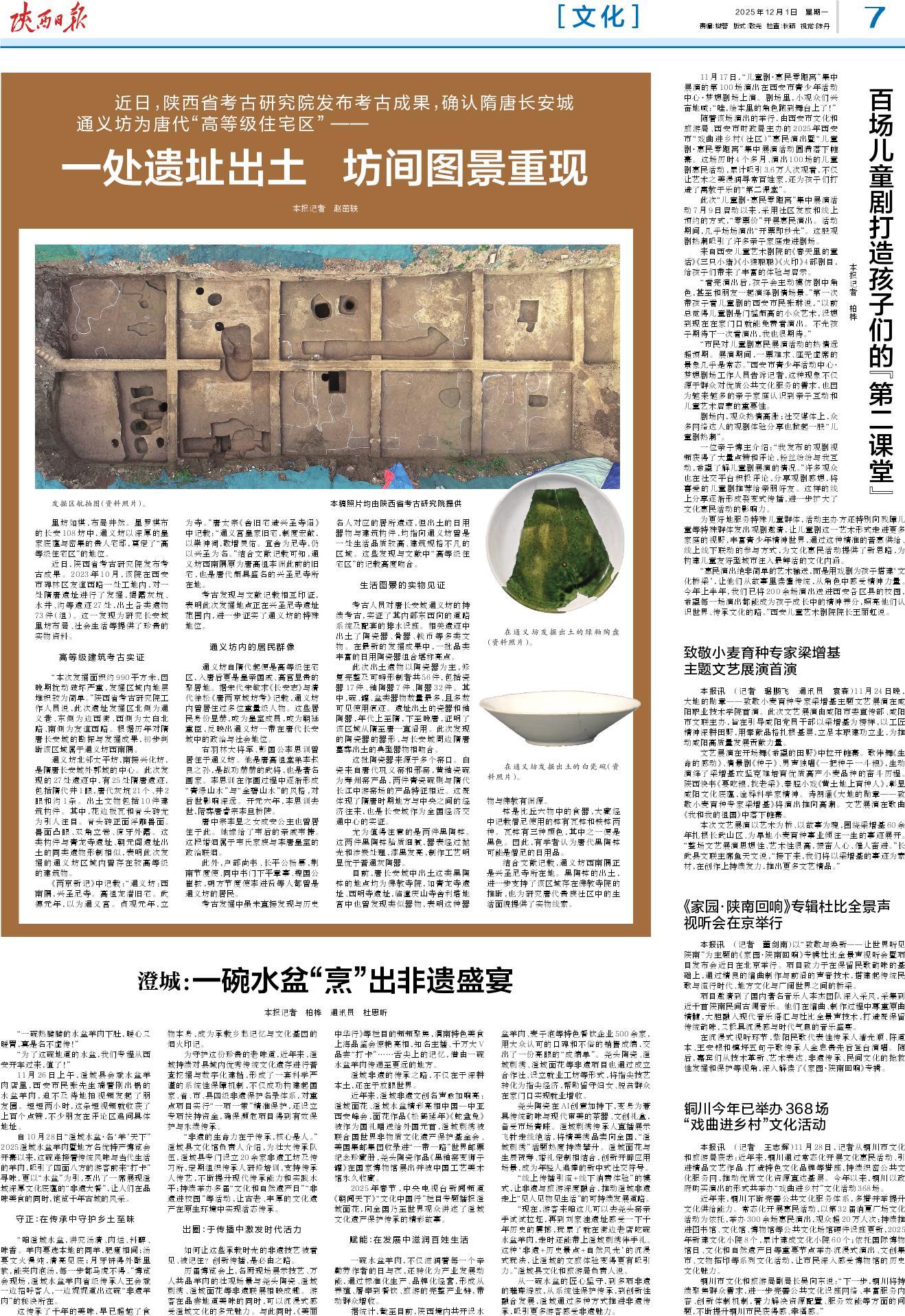 考古人员对唐长安城通义坊的持续考古,实证了其内部东西向的道路系统及配套的排水设施。相关遗迹中出土了陶瓷器、骨器、钱币等多类文物。在最新的发掘成果中,一批品类丰富的日用陶瓷器组合堪称亮点。