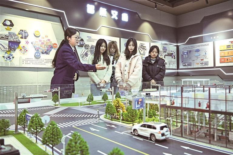 11月22日,在长安大学公路交通博物馆,讲解员给游客介绍智慧网联交通仿真平台的相关情况。 本报记者 杜玮摄